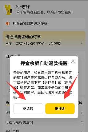 4、成功进入以后会跳出一个弹窗,询问用户是否绑定过摩拜单车,并选择退押金、退余额。