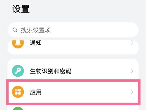 1.单击手机设置菜单中的应用程序。