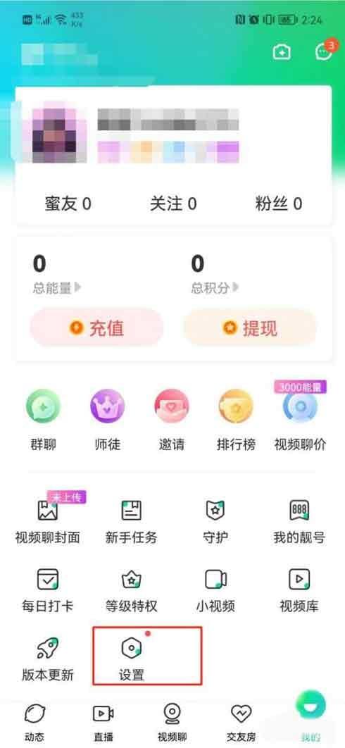 第一步:选择青柠直播APP主页,找到右下角我的。