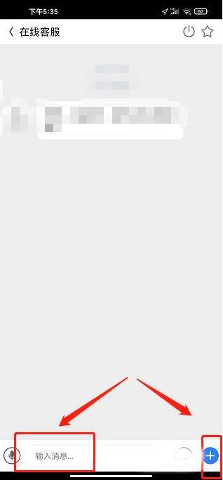 进入在线客服界面,输入咨询内容,点击【+图标】。