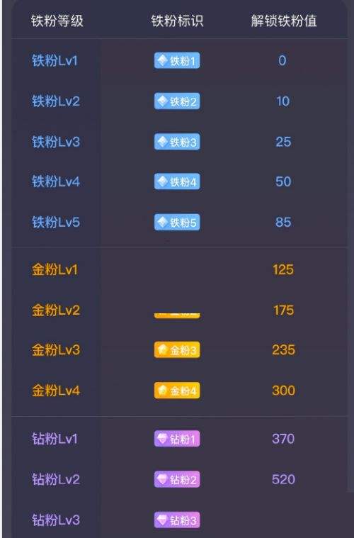 2.然后在这个界面上,你可以看到你的铁粉值和钻粉级别。