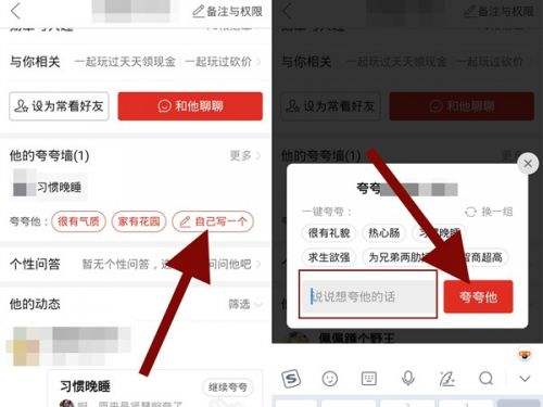2.最后点击自己写一个,输入内容,点击夸夸他即可成功夸夸别人。
