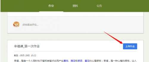 1、进入学生端,学生作业页面,点击【上传作业】按钮