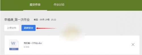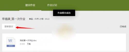 3、提交作业后,如果想更改,点击【更新作业】按钮