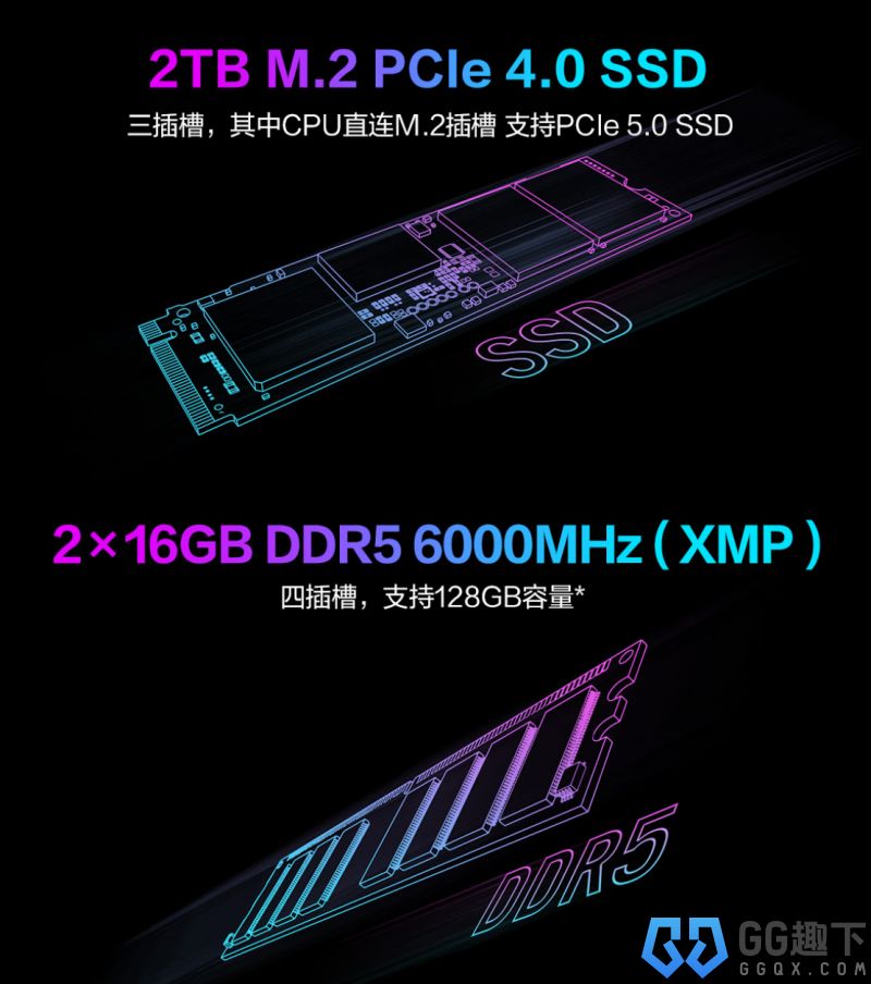 ROG魔霸9X还提供16GB×2的内存组合,32GB容量不仅为游戏、创作提供了广阔的空间,在英特尔酷睿Ultra 7处理器265KF的加持下,其频率还可提升至6000MHz(开启XMP功能)。此外,还为玩家配备了2TB PCIe 4.0 SSD,足以容纳海量3A大作,得益于CPU直连M.2插槽的优势,英特尔酷睿Ultra 7处理器265KF与SSD数据交互速度进一步提升,游戏加载、软件启动将更为迅捷。ROG魔霸9X拥有3×M.2硬盘位及4×DDR5内存插槽,便于后续扩展升级。