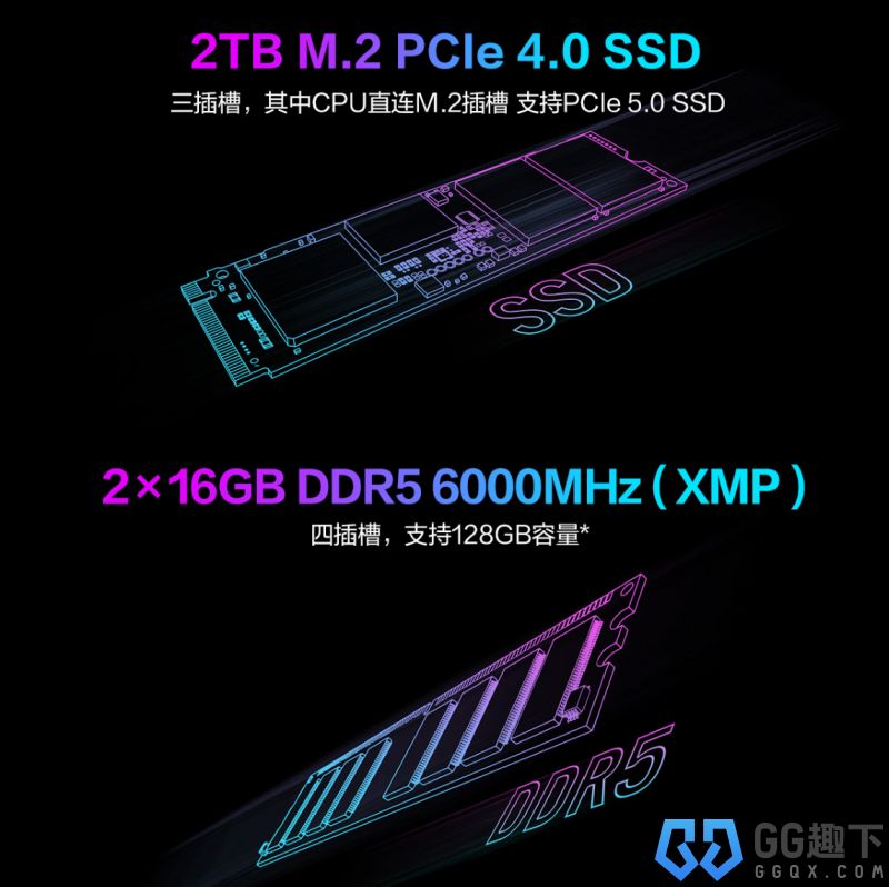 存储方面,ROG魔霸9X采用2×16GB DDR5高频内存,开启XMP后频率可达6000MHz,配合英特尔酷睿Ultra 7处理器高效的内存控制器,可有效降低延迟,给予玩家满分流畅度。还有2TB大容量PCle 4.0 SSD加持,可轻松满足海量游戏与各类文件下载需求,告别存储焦虑。值得一提的是,机身内部额外预留有2×M.2硬盘位及2×DDR5内存插槽,玩家可按需自行升级。接口部分,魔霸9X机身配有2×USB-A 5Gbps、1×USB-C 5Gbps、2×音频接口,主板配有4×USB-A 5Gbps、4×USB-A 2.0、1×USB-C 10Gbps、1×USB-A 10Gbps、1×RJ-45网线接口、1×DP 1.4与3×音频接口,满足随心外接与拓展需求。