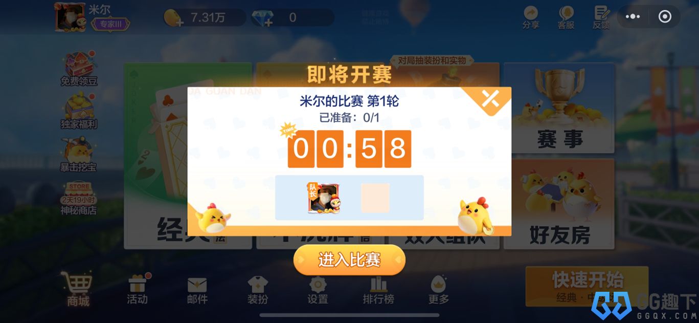 游戏和微信、QQ完全打通,不用额外注册,直接就能和好友组队打牌。有比赛的时候,分享给朋友也很方便,一点就能参加。