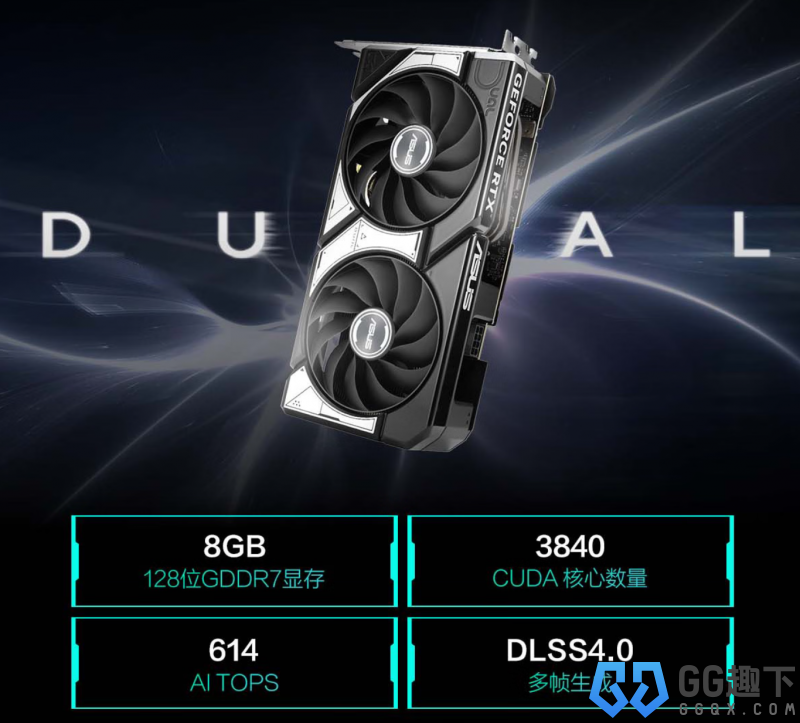显卡部分则采用市售版本的DUAL GeForce RTX 5060。作为加速游戏体验的另一关键输出装备,拥有8GB GDDR7大容量显存、并提供高达614 TOPS AI算力。在与英特尔酷睿Ultra 5处理器225F的相互搭配下,可无压力流畅运行市面上各类主流热门3A游戏、为本地对话模型、AI视频剪辑抠图等场景应用提供充足算力。在显卡的细节设计上,研发团队为其配备了两枚轴流风扇,并采用2.5插槽设计,不仅占用空间更小,还能增强热风流出效率,避免内部积热导致的帧数下降。